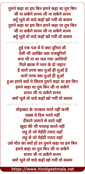 Lyrics of Tumne Kaha Tha Hum Bin - तुमने कहा था हम बिन