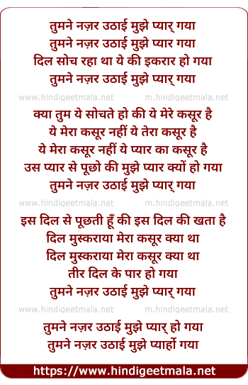 Lyrics of Tumne Nazar Uthai Mujhe Pyar Ho Gaya