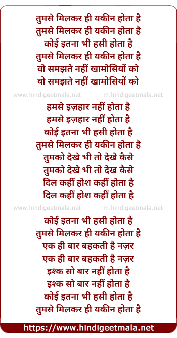 Lyrics of Tumse Milkar Hi Yakeen Hota Hai - तुमसे मिलकर ही यकीन होता है