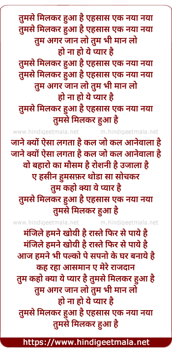Lyrics of Tumse Milkar Hua Hai Ehsaas - तुमसे मिलकर हुआ है एहसास