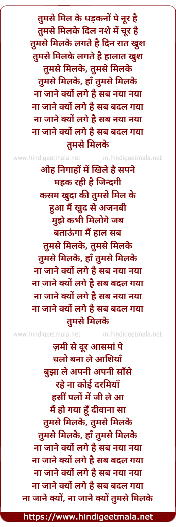 Poetic Translation - Lyrics of Tumse Milke - तुमसे मिल के