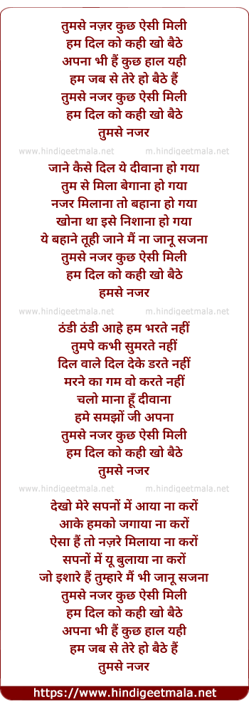 Lyrics of Tumse Nazar Kuch Aisi Mili - तुमसे नज़र कुछ ऐसी मिली