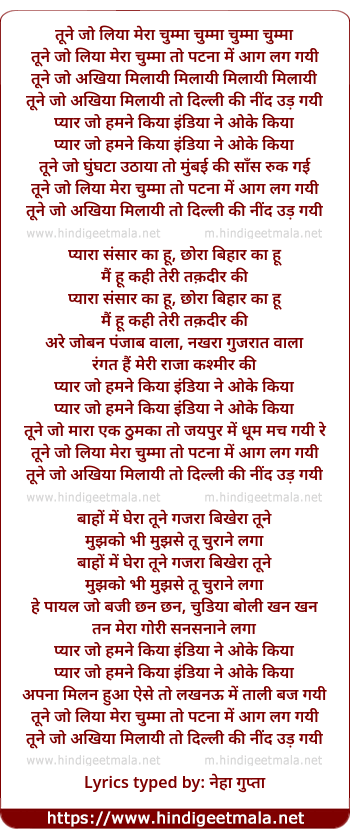 tune jo liya mera chumma toh patna me aag lag gayi
