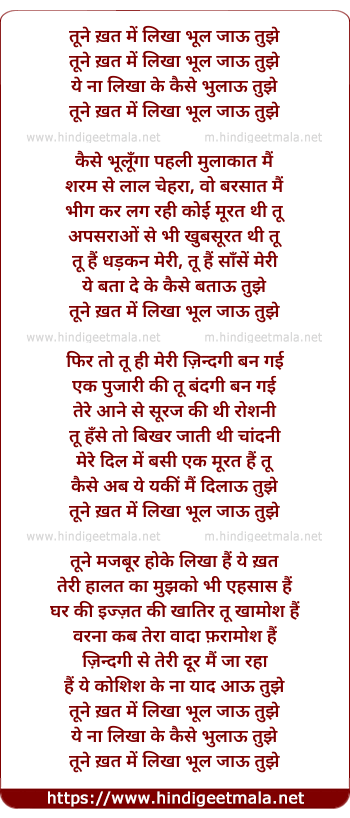 Poetic Translation - Lyrics of Tune Khat Mein Likha - तूने ख़त में लिखा भूल जाऊ तुझे
