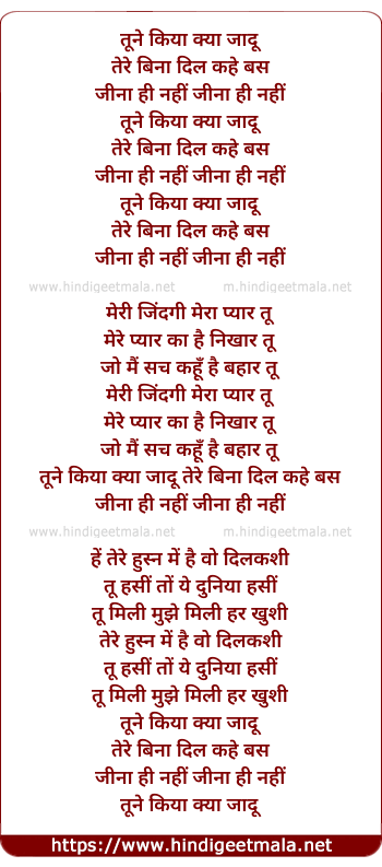 tune kiya kya jadu tere bina dil kahe bas