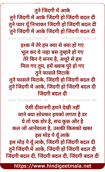 tune jindagi me aake, jindagi ho jindagi badal di