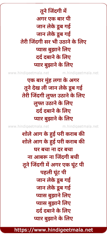 Lyrics of Tune Zindagi Me Agar Ek Baar Pi - तूने जिंदगी में अगर एक बार पी