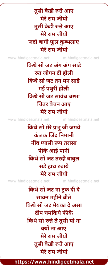 Lyrics of Tusi Kehri Rutte Aaye Mere Raam Ji - तुसी केडी रुत्ते आए
