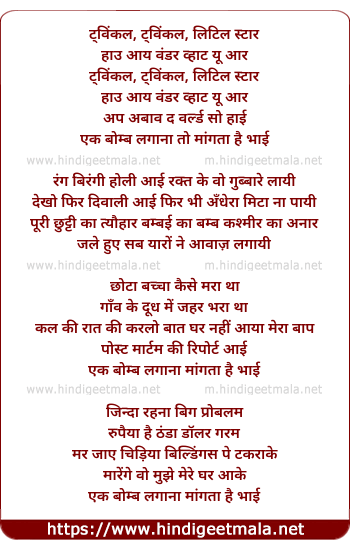 Lyrics of Twinkle, Twinkle, Little Star, Rang Birangi Holi Aayi - ट्विंकल, ट्विंकल, लिटिल स्टार, रंग बिरंगी होली आई