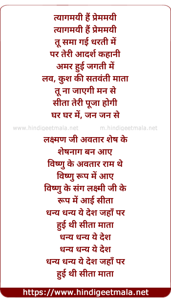 Lyrics of Tyagmayi He Premmayi - त्यागमयी हैं प्रेममयी