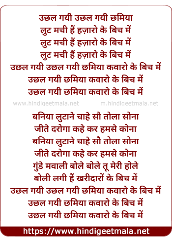 Lyrics of Uchhal Gayi Chhamiya Kawaro Ke Bich Me(Remix) - उछल गयी उछल गयी छमिया