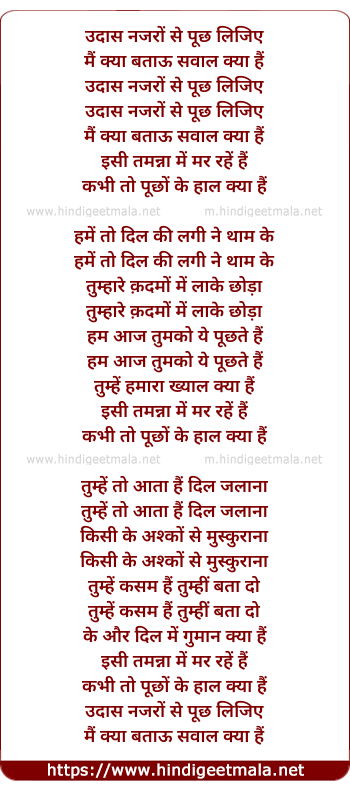 Lyrics of Udas Nazaro Se Puch Lijiye - उदास नजरों से पूछ लिजिए