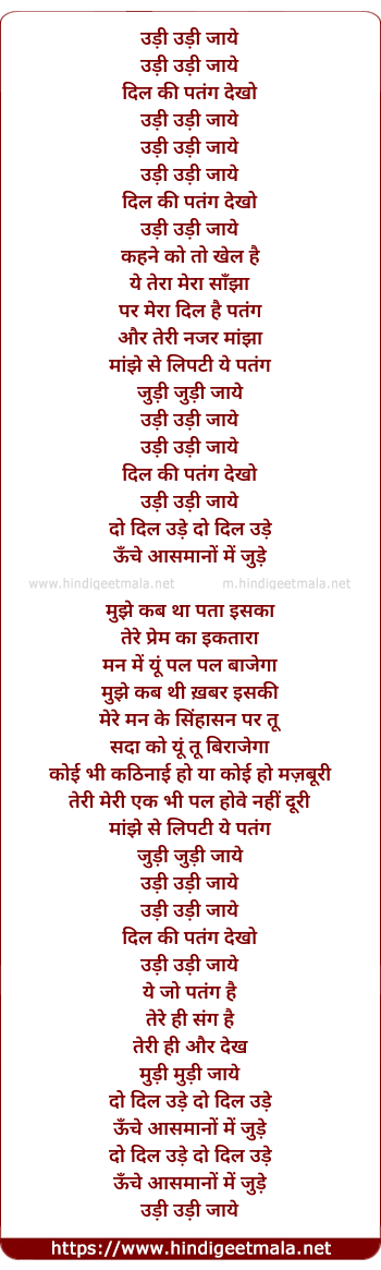 Lyrics of Udi Udi Jaye - उड़ी उड़ी जाये
