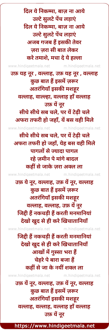 Lyrics of Uff Yeh Noor - उफ़ ये नूर