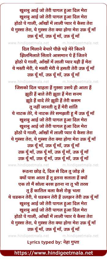 lyrics typed by: neha gupta
