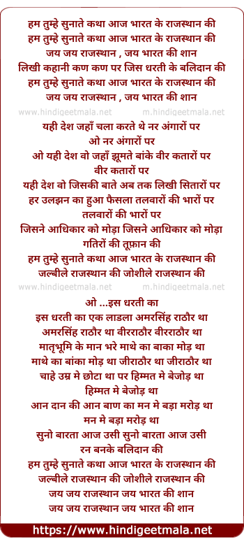 ham tumhe sunate katha aaj bharat ke rajsthan ki