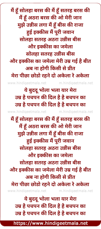 mai hu solha baras ki mai hu satrah baras ki