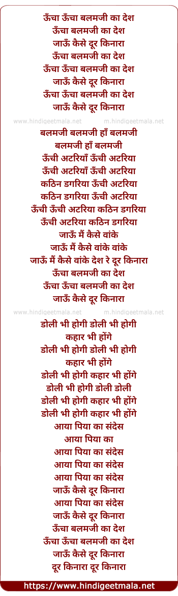 Lyrics of Uncha Balamji Ka Des - ऊँचा ऊँचा बलमजी का देश