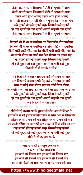Lyrics of Unchi Ataari Palang Bichhaaya - ऊँची अटारी पलंग बिछाया