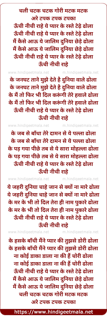 unchi nichi raahe ye pyar ke raste tedhe dhola