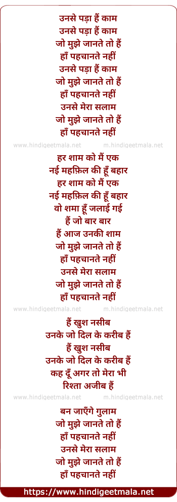 Lyrics of Unse Pada Hai Kaam Jo - उनसे पड़ा हैं काम जो