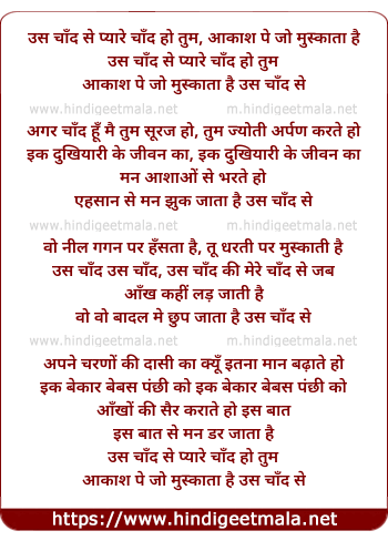 Lyrics of Us Chand Se Pyare Chand Ho Tum - उस चाँद से प्यारे चाँद हो तुम, आकाश पे जो मुस्काता है