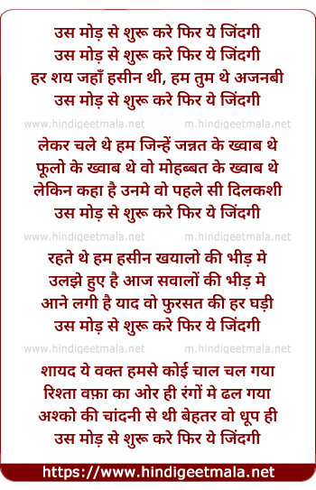 Lyrics of Us Mod Se Shuru Kare Phir Ye Zindagi - उस मोड़ से शुरू करे फिर ये जिंदगी