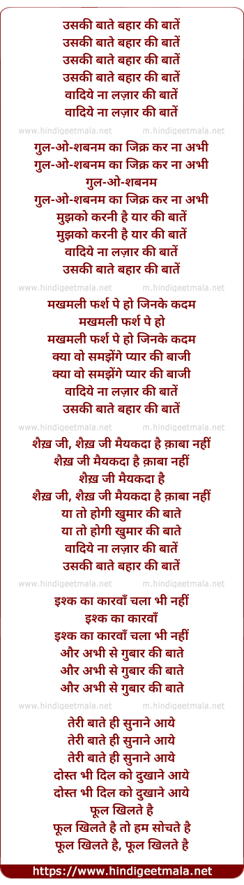 Lyrics of Uski Bate Bahar Ki Bate - उसकी बाते बहार की बातें
