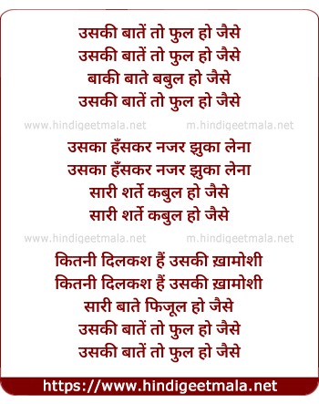 Lyrics of Uski Bate To Phool Ho Jaise - उसकी बातें तो फुल हो जैसे