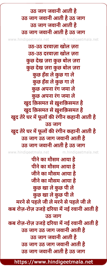 Lyrics of Uth Jaag Javaani Aati Hai - उठ जाग जवानी आती है