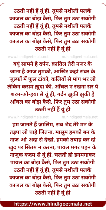 Lyrics of Uthati Nahin Hain Yun Hi Tumase Nashili Palaken - उठती नहीं हैं यूं ही, तुमसे नशीली पलकें