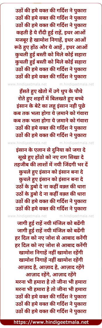 Lyrics of Utho Ke Hame Waqt Ki Gardish Ne Pukara - उठों की हमे वक्त की गर्दिश ने पुकारा