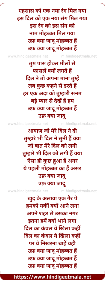 Lyrics of Uf Kya Jadu Mohabbat Hai I - उफ़ क्या जादू मोहब्बत है