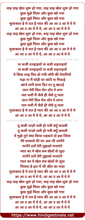 Lyrics of Vaah Vaah Khel Shuru Ho Gaya - वाह वाह खेल शुरू हो गया