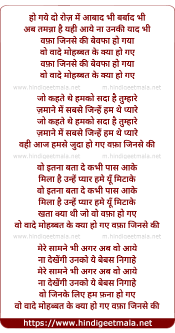 Lyrics of Wafaa Jinse Ki Bewafa Ho Gaye - वफ़ा जिनसे की बेवफा हो गए