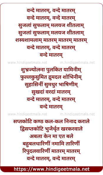Lyrics of Vande Mataram (Reverance) - वन्दे मातरम्, वन्दे मातरम्