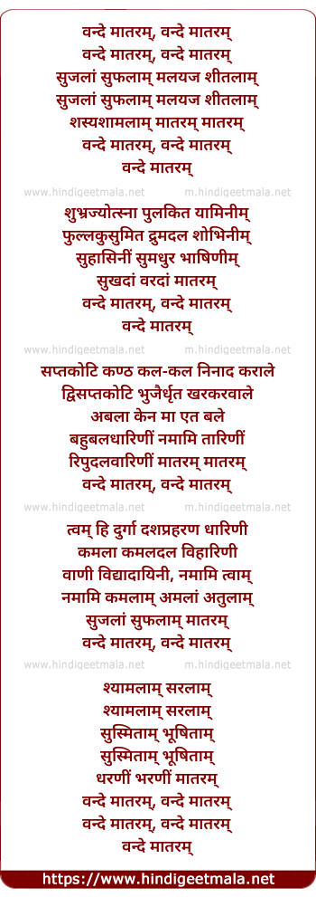 Lyrics of Vande Mataram (Tribute To Freedom) - वन्दे मातरम्, वन्दे मातरम्