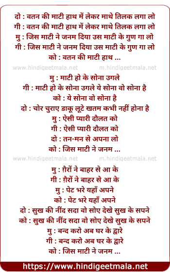 Lyrics of Vatan Ki Maati Haath Mein Lekar - वतन की माटी हाथ में लेकर