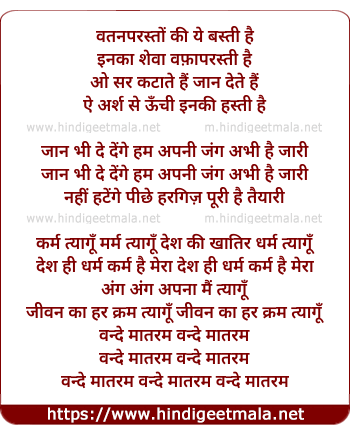 Lyrics of Vatan Parasto Ki Ye Basti Hai - वतन परस्तों की ये बस्ती है