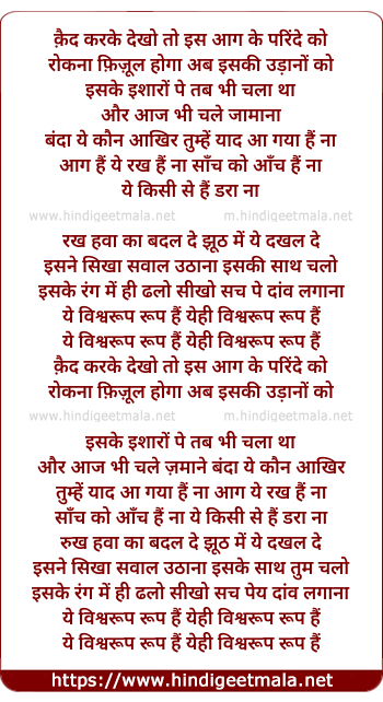 Lyrics of Vishwaroop Ii Title Song (Yahi Vishwaroop Hai) - विश्वरूप 11 टाईटल सोंग (Yahi Vishwaroop Hai)