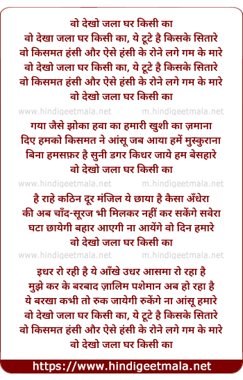 Lyrics of Vo Dekho Jalaa Ghar Kisi Kaa - वो देखा जला घर किसी का
