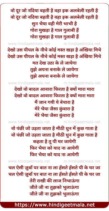 Lyrics of Vo Dur Jo Nadiyaa Behati Hai - वो दूर जो नदियाँ बहती है