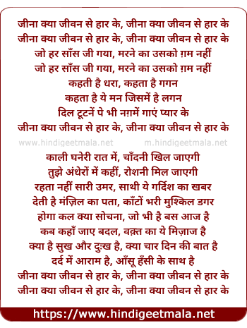 jina kya jivan se har ke, jina kya jivan se har ke
