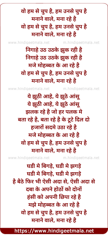 Lyrics of Vo Ham Se Chup Hain, Ham Unse Chup Hain - वो हम से चुप है, हम उनसे चुप है