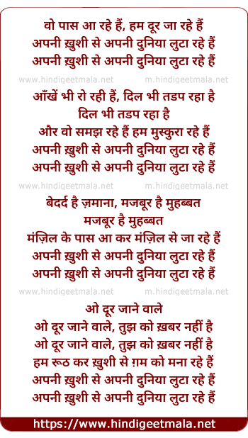 Lyrics of Vo Paas Aa Rahe Hain, Hum Dur Jaa Rahe Hain - वो पास आ रहे हैं, हम दूर जा रहे हैं