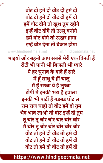 Lyrics of Vote Do Hame Do - वोट दो हमें दो