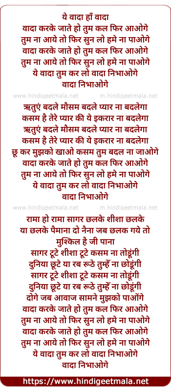 Lyrics of Waada Karke Jate Ho Tum - वादा करके जाते हो तुम