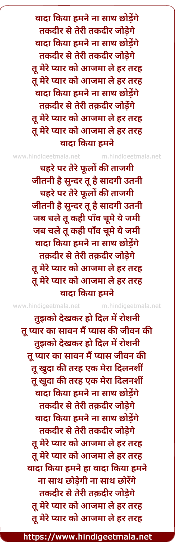 Lyrics of Wada Kiya Humne - वादा किया हमने