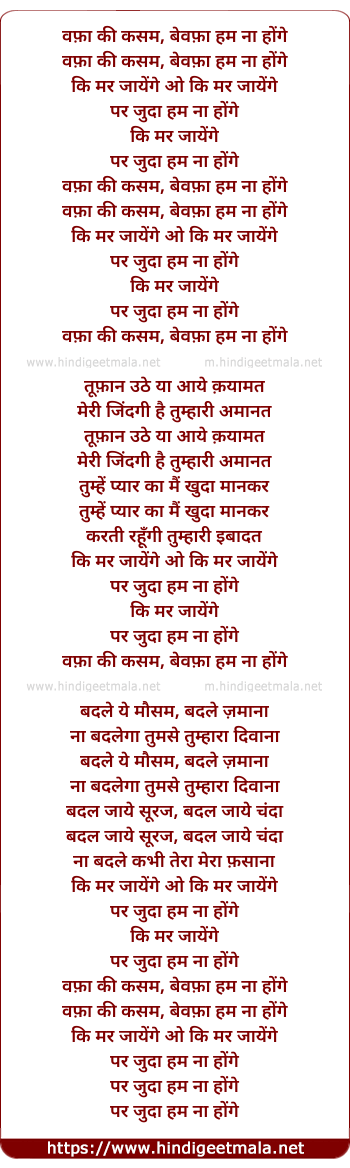 Lyrics of Wafa Ki Kasam (I) - वफ़ा की कसम, बेवफ़ा हम ना होंगे