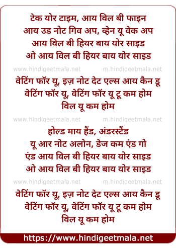 Lyrics of Waiting For You - वेटिंग फॉर यू